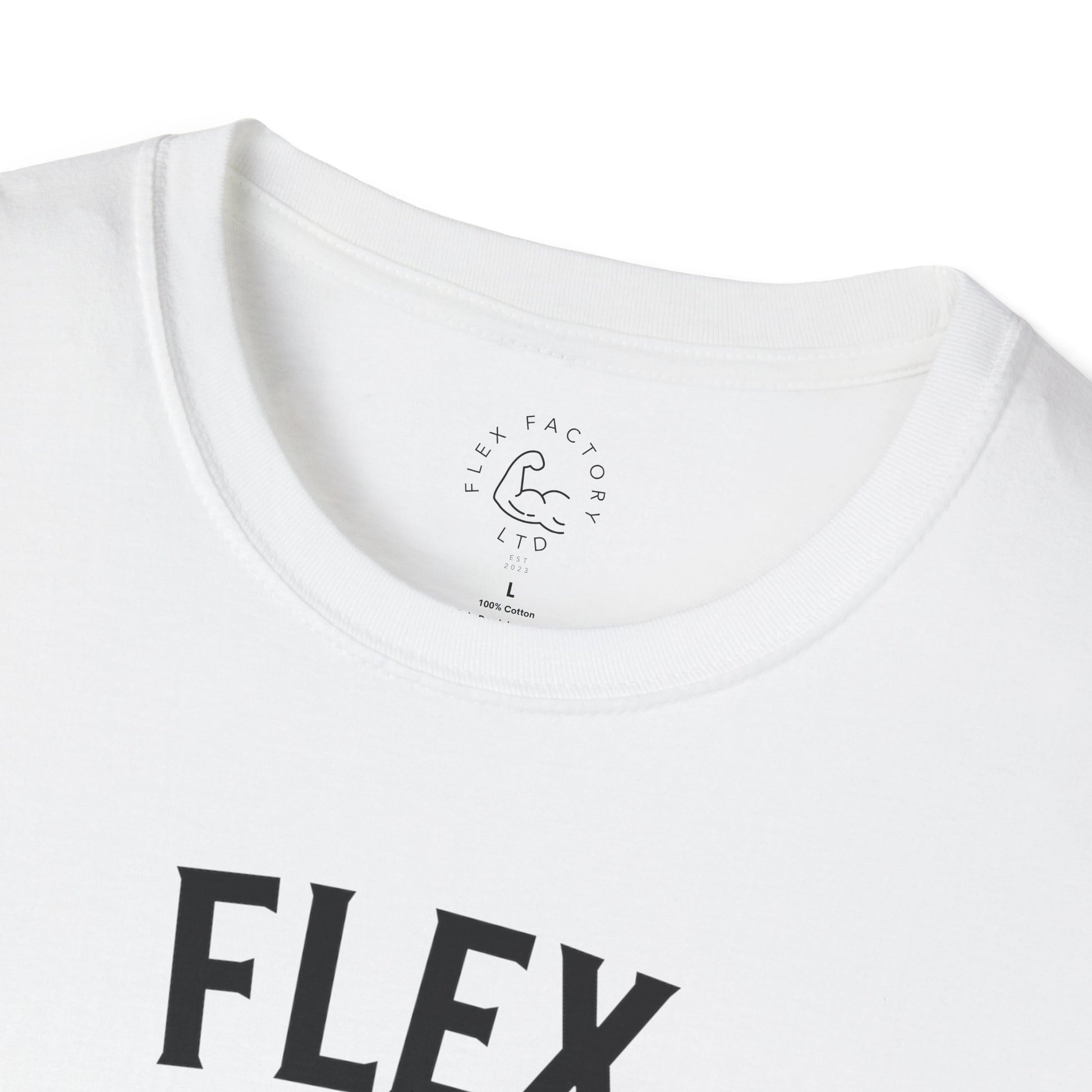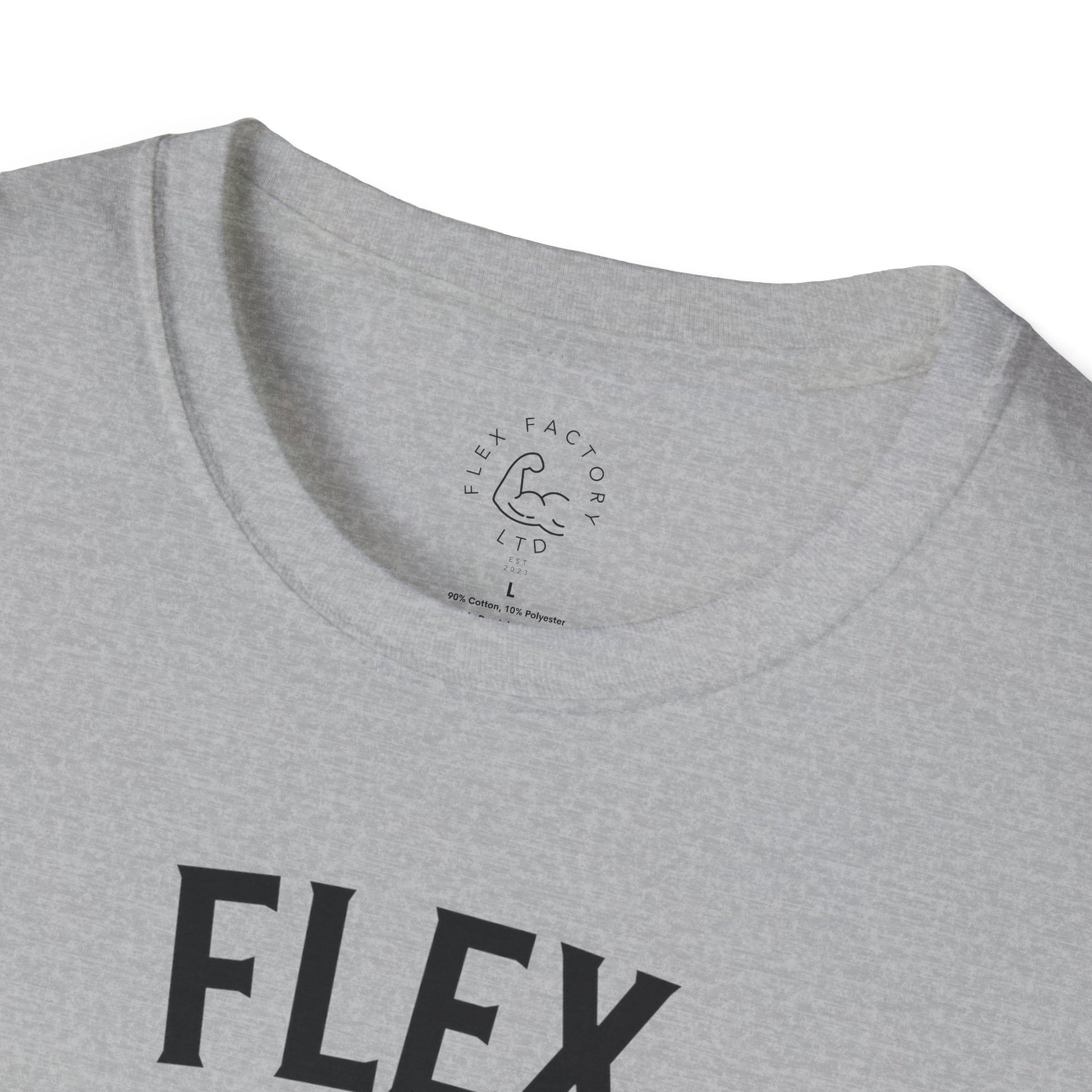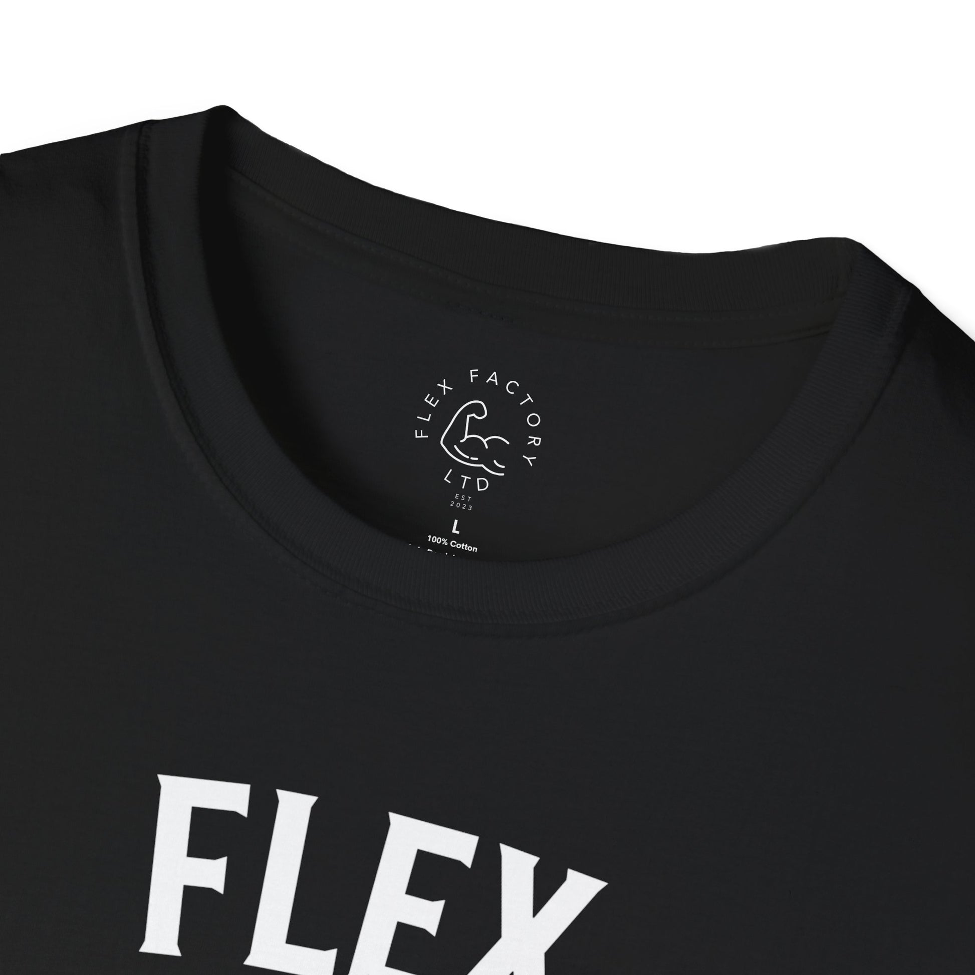 This isn't just a shirt; it's an invitation to join a community of like-minded iron warriors. As you conquer each rep, know that you're part of something bigger—know you’re now a part of the Flex Factory Faction. Leave the weak behind, be strong!
